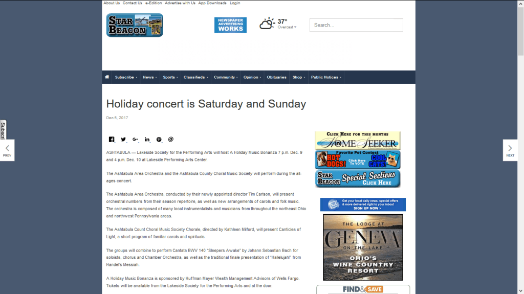 AAO News Regional News Coverage, Press Releases and Media http://www.gazettenews.com/index.php?option=com_content&view=article&id=6810:silver-bells-ashtabula-area-orchestra-s-25th-annual-christmas-concert-to-offer-performances-in-ashtabula-and-jefferson&catid=45&Itemid=141 https://www.starbeacon.com/news/local_news/ashtabula-area-orchestra-to-host-christmas-concerts-this-weekend/article_ee30d703-c5ce-5cf2-9b92-b0b6425c38ee.html https://www.starbeacon.com/news/local_news/ashtabula-area-orchestra-plans-more-community-programs/article_477161ba-ffd3-5d60-9cf2-e0f2d9f0fe13.html Share this: Share on X (Opens in new window) X Share on Facebook (Opens in new window) Facebook Like Loading...